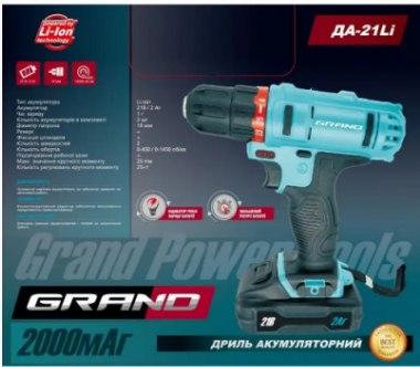| Тип призначення | Акумуляторний дриль-шурупокрут Grand Так-21 Li Професійні шурупокрути акумуляторні |